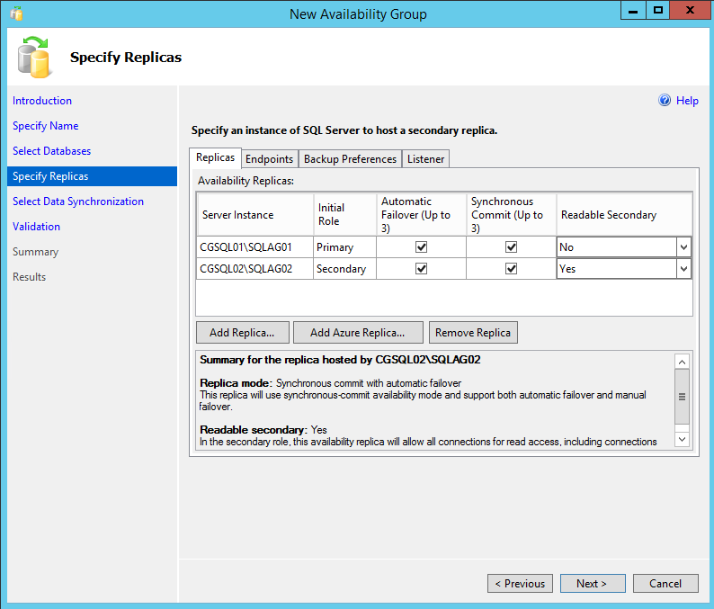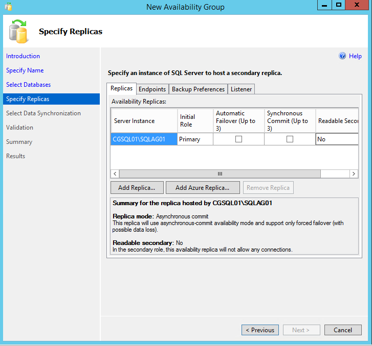 This page applies to the New Availability Group Wizard and the Add Replica to Availability Group Wizard of SQL Server 2016.