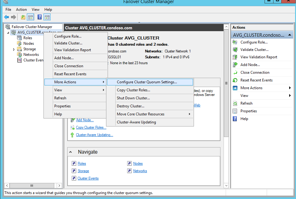 Click on Your Cluster Select Configure Cluster Quorum Setting from the More action menu.