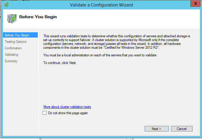 NOTE: The Cluster Validation Wizard is expected to return several Warning messages, especially if you will not be using shared storage. Other than that if you find any error messages you need to fix them prior to creating the Windows Server Failover Cluster.